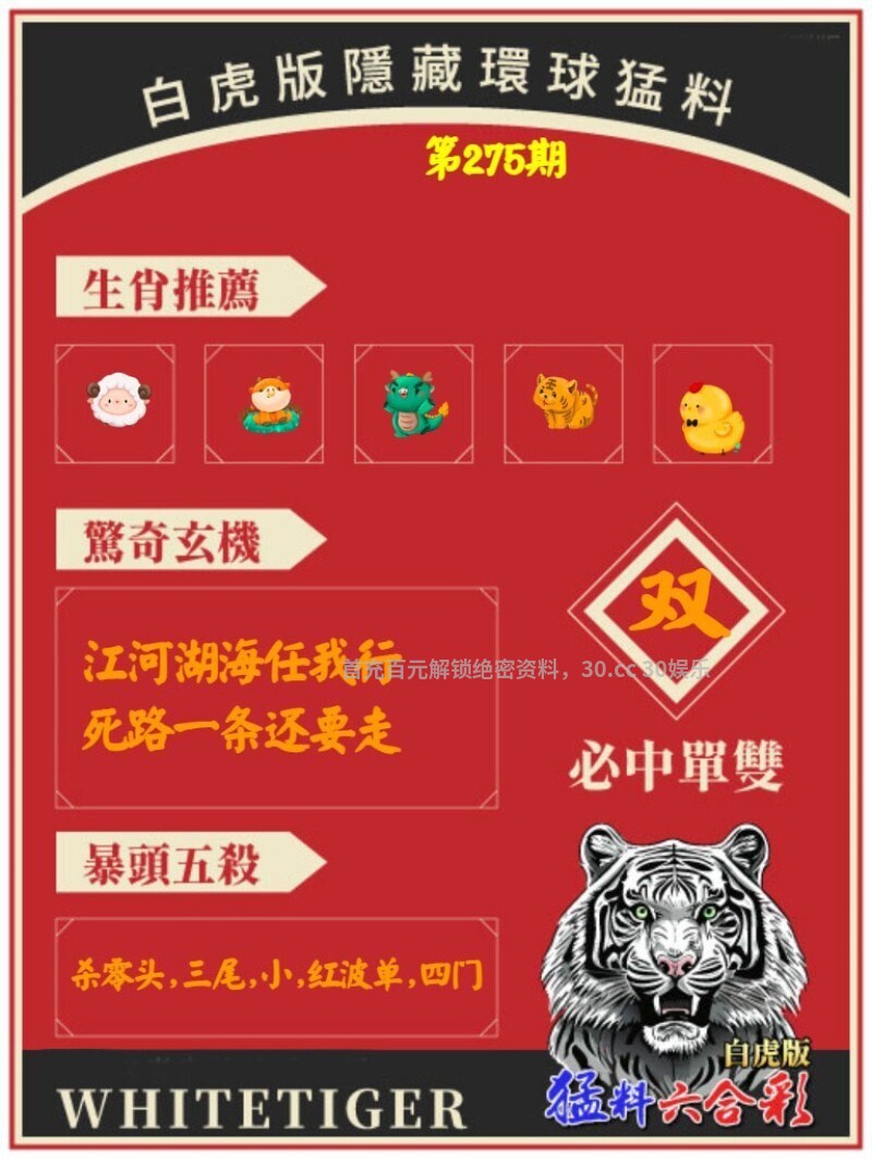 275期:【正版波色输尽光】开:鸡45(红) 今期买蓝波输尽光,天肖有玄机 |